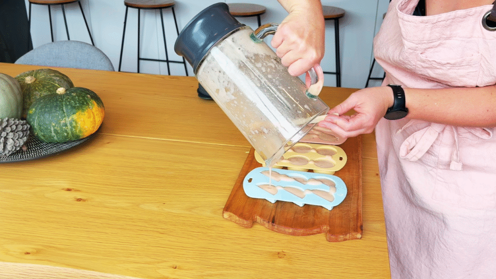 These soothing gummies are one of my toddler’s favorite snacks. I simmer apples with chamomile tea (you could use elderflower too), blend them until smooth, then stir in high-quality gelatin and pour into silicone molds.