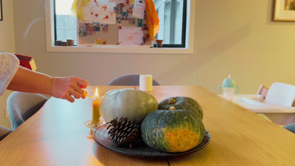 This kind of autumn meal prep with a toddler doesn’t need to be overwhelming. We work with the flow of the day – starting with a candlelit breakfast and morning walk, then gently moving into the kitchen while my toddler plays nearby or helps with little tasks. I filmed the whole thing for YouTube too, so if you prefer to watch the day unfold, you can check it out here.